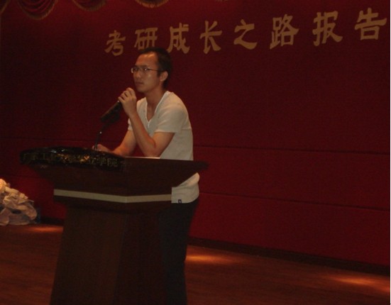 报告会邀请我院04级计算机科技2班黄少滨、05级市场营销4班邓益健同学主讲,他们分别以优异成绩考取华南理工大学、中山大学2009年硕士研究生。他们以亲身经历和自我实践,向同学们讲述考研过程中的艰辛、困难、坚持和成功后的喜悦……整场演讲感人至深,5次赢得台下热烈的掌声,现身说法再次让同学们看到希望,激发了大家的学习热情。现场互动交流、提问,再次掀起高潮,十几位同学争先提问,关于数学、英语、政治、专业课复习方法及考试技巧等。嘉宾们逐一解答,并鼓励大家,在考研的征程中一定要有执着、永不放弃的拼搏精神;要有坚持到底,不达目的不罢休的顽强意志。