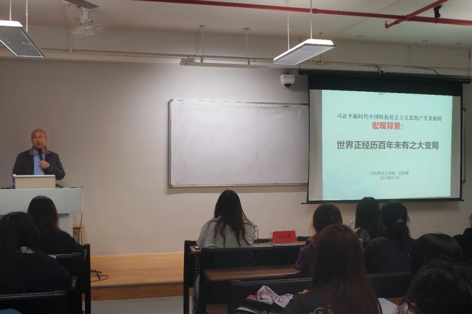 为深入贯彻落实习近平总书记关于青年工作的重要思想,帮助青年骨干进一步提升政治素养,打牢理论功底,培养爱国情感,更好发挥学员模范作用,计算机工程学院于11月27日19:00点在第四教学楼607举办“青马工程”学员首场理论培训。直属党支部应计算机学院谢太义书记的邀请,选派王和强教授参与本期青马工程第一课宣讲,这是更好发挥马院思政课教师理论宣讲优势,推动思想政治教育全过程育人工作的重要举措。