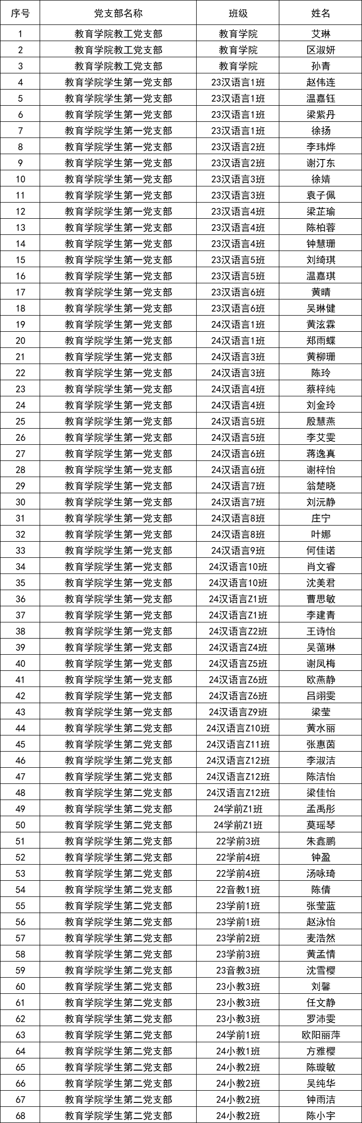 教育学院党总支2025年上半年拟推荐入党积极分子培训班学员名单公示