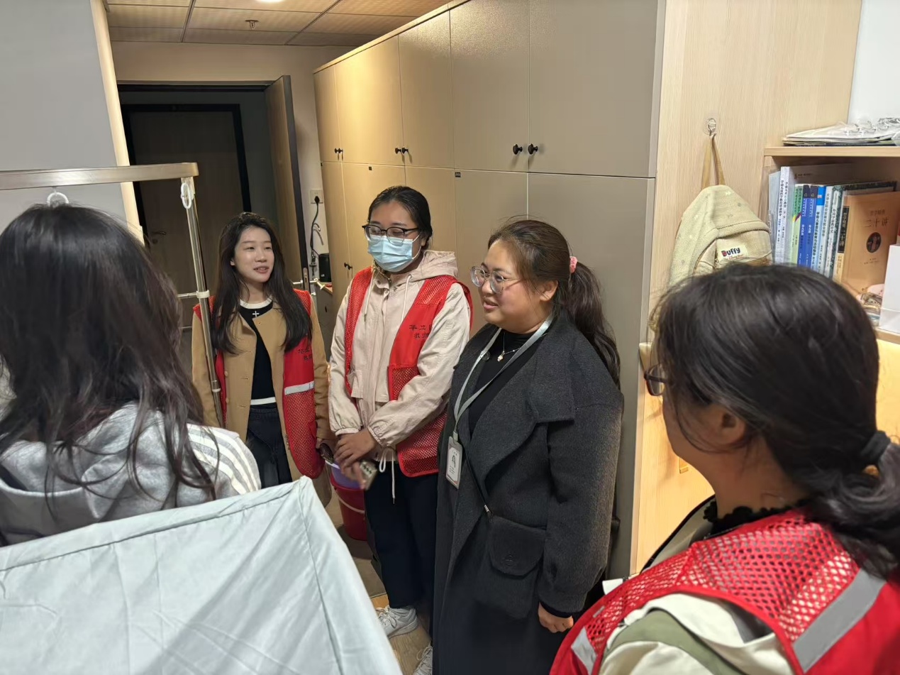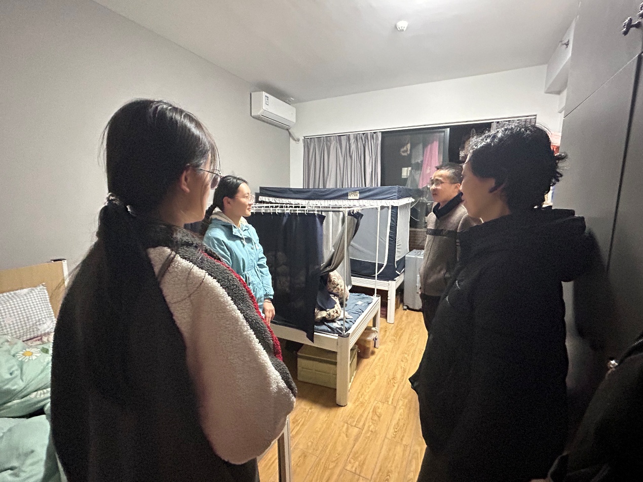 随后,各老师还在走访中仔细检查宿舍的卫生状况和安全设施,并叮嘱同学们要注意用电安全,杜绝使用违规电器,避免安全隐患,鼓励大家要共同维护宿舍环境,营造整洁、舒适的生活空间。