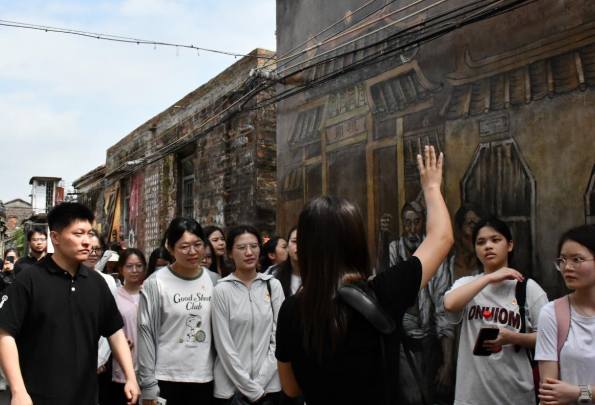 活动第三站,参观街道特色、蔡李佛洪圣始祖馆和蔡李佛文化中心。以京上梅花元素打造的梅花三弄巷和以蔡李佛元素打造的出神入化巷,在墙绘、浮雕和景观装置混合设计的巷道中,在场人员都深刻感受底蕴浓厚的武术文化与乡村环境整治结合的显著成果。随后,大家来到爱国主义教育基地——蔡李佛洪圣始祖馆和蔡李佛文化中心,在场学生认真聆听蔡李佛拳的发展历程讲解,了解创始人陈享的生平故事,端详珍贵的历史实物,阅览图片史料文字,深切感悟陈享公及其弟子们的家国情怀。