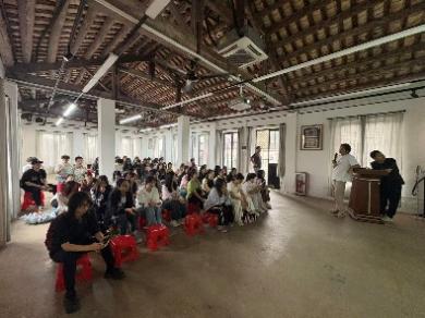 活动伊始,师生们在典雅宁静的会场内参加了“侨乡文化与摄影技巧”专题讲座。专业教师紧扣学前教育专业对学生艺术素养的培养要求,围绕“摄影构图逻辑”“写生场景光影捕捉”等实用技巧展开讲解,并结合案例演示帮助学生快速掌握创作要领。同时,讲座系统梳理了台山侨乡的历史脉络,从华侨“下南洋”的奋斗历程到侨乡文化的形成与传承,为后续实地探访打下坚实的文化认知基础。