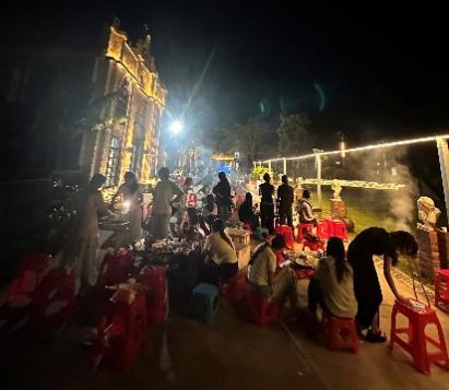 夜幕降临,师生们开展了烧烤团建与篝火晚会。在轻松愉悦的氛围中,大家分享了当日的研学收获——从银信中的感人故事到碉楼的建筑细节,从摄影技巧的实践到写生思路的交流。互动不仅深化了学习成果,也进一步增强了团队凝聚力,为紧凑的研学行程注入了温暖与活力。