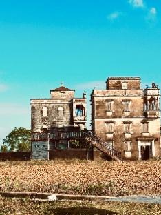 随后,研学队伍抵达本次写生核心目的地——台山市浮月村。错落分布于田野间的碉楼群,是侨乡建筑艺术的生动写照:这些建筑既保留了中式传统民居的院落格局,又巧妙融入西方哥特式拱券、罗马柱等元素,炮楼、瞭望窗等防御设计与精美雕花栏杆相得益彰,兼具实用与艺术价值。