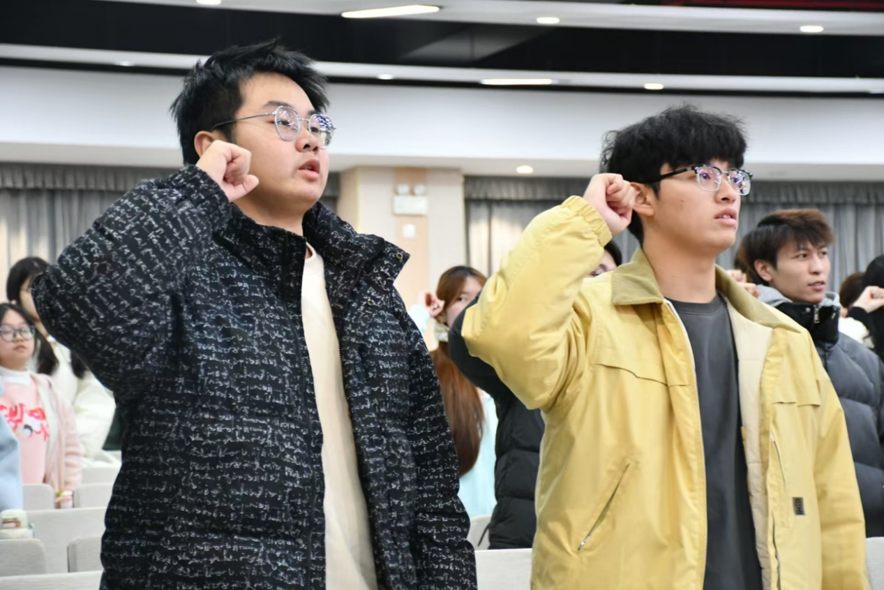 随后,主持人身姿挺拔站在台前,带领同学们宣读诚信考试宣言。同学们整齐站立,昂首挺胸,右手握拳高高举起,齐声高呼:“我宣誓...”洪亮的誓言在报告厅内回荡,彰显了同学们坚守诚信、拒绝作弊的坚定决心。