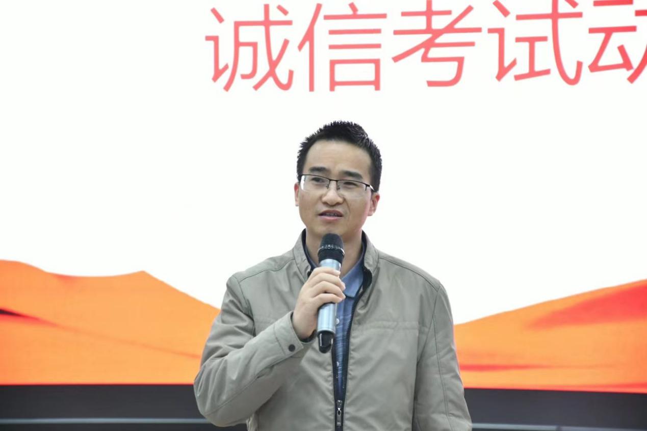大会伊始,学院党总支书记戴礼祥书记发表讲话,强调学院一直以来在考风考纪方面多次受到上级表扬,这离不开同学们的共守诚信的良好品质。希望大家共同努力,心存感恩,摒弃侥幸心理,诚信考试,为营造良好文明守信的考试生态努力奋斗。
