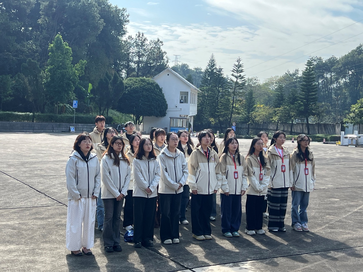 第二站,师生一行奔赴昆仑关战役遗址,踏足这片历经烽火洗礼的土地。在昆仑关战役博物馆内,大家通过实物陈列、影像资料与现场讲解,系统学习了昆仑关战役爆发的历史背景与战略意义。随后,队伍来到巍巍昆仑关前,肃立于庄严肃穆的阵亡将士纪念塔下。全体师生列队整齐,神情凝重,向在战役中英勇牺牲的将士敬献花圈并默哀致敬,深切缅怀为民族独立与自由献出生命的英魂。