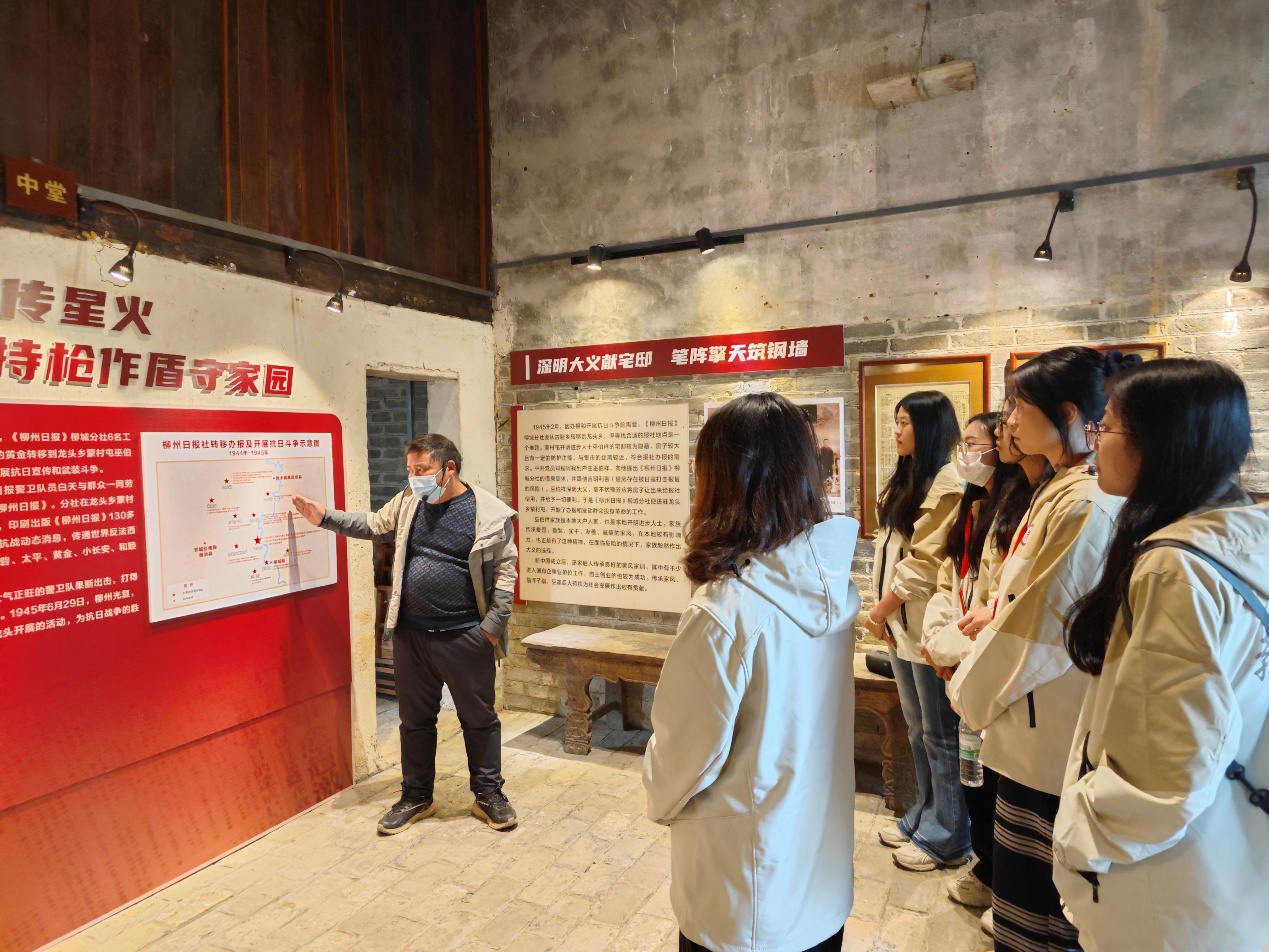 最后,师生一行抵达柳城县探访《柳州日报》柳城分社旧址。在报社现场,师生们通过讲解教学、实物陈列等沉浸式学习方式,深入了解了柳城分社在抗战时期的创办背景与运作模式。“以笔为矛,以报传声”——这八个字生动诠释了“文字抗战”在敌后斗争中的重要作用与特殊贡献。师生们在重温历史的过程中,真切感受到革命先辈以文载道、以笔为枪的坚守与勇气,进一步推动了红色基因的传承,让理想信念在年轻一代心中扎根生长。
