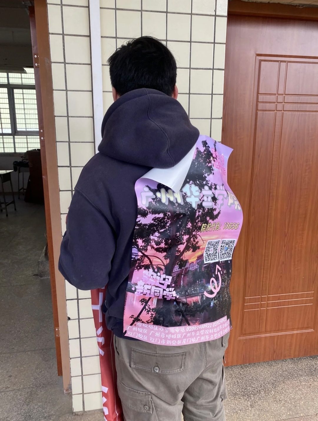 看我们的学长把海报贴自己身上,把责任扛在肩上,用最特别的宣传方式传递最真诚的声音。