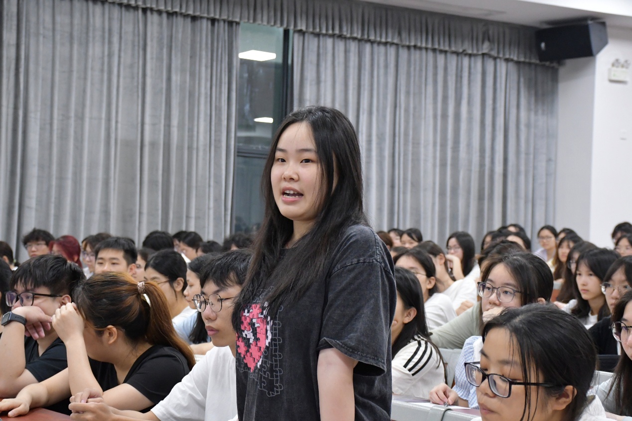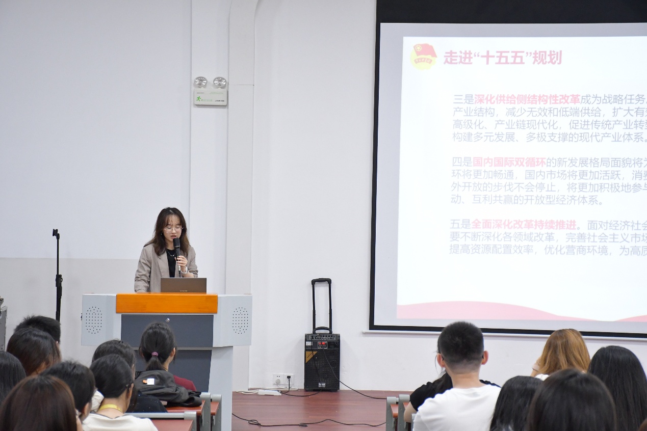 在培训中,林梓滢老师对于“为何加入共青团”进行了互动提问。参训同学们踊跃参与,各抒己见。之后林老师从思想进步、集体成长、责任担当、时代奉献、政治发展五个维度,引导同学们树立正确的入团动机,鼓励大家以先进为标杆,在学习与生活中发挥模范带头作用,将个人理想融入国家发展大局。在此基础上,林老师系统讲解了入团全流程,从提交申请书、团课培训,到公示、审批、建档、等关键环节逐一说明,明确规范要求,帮助同学们清晰掌握入团路径。同时,林老师还带领同学们了解“十五五”规划的内容以及“西部计划”、“三支一扶”等社会实践平台,勉励同学们紧跟国家发展步伐,未来积极投身基层服务与社会实践,在奋斗中绽放青春光彩。