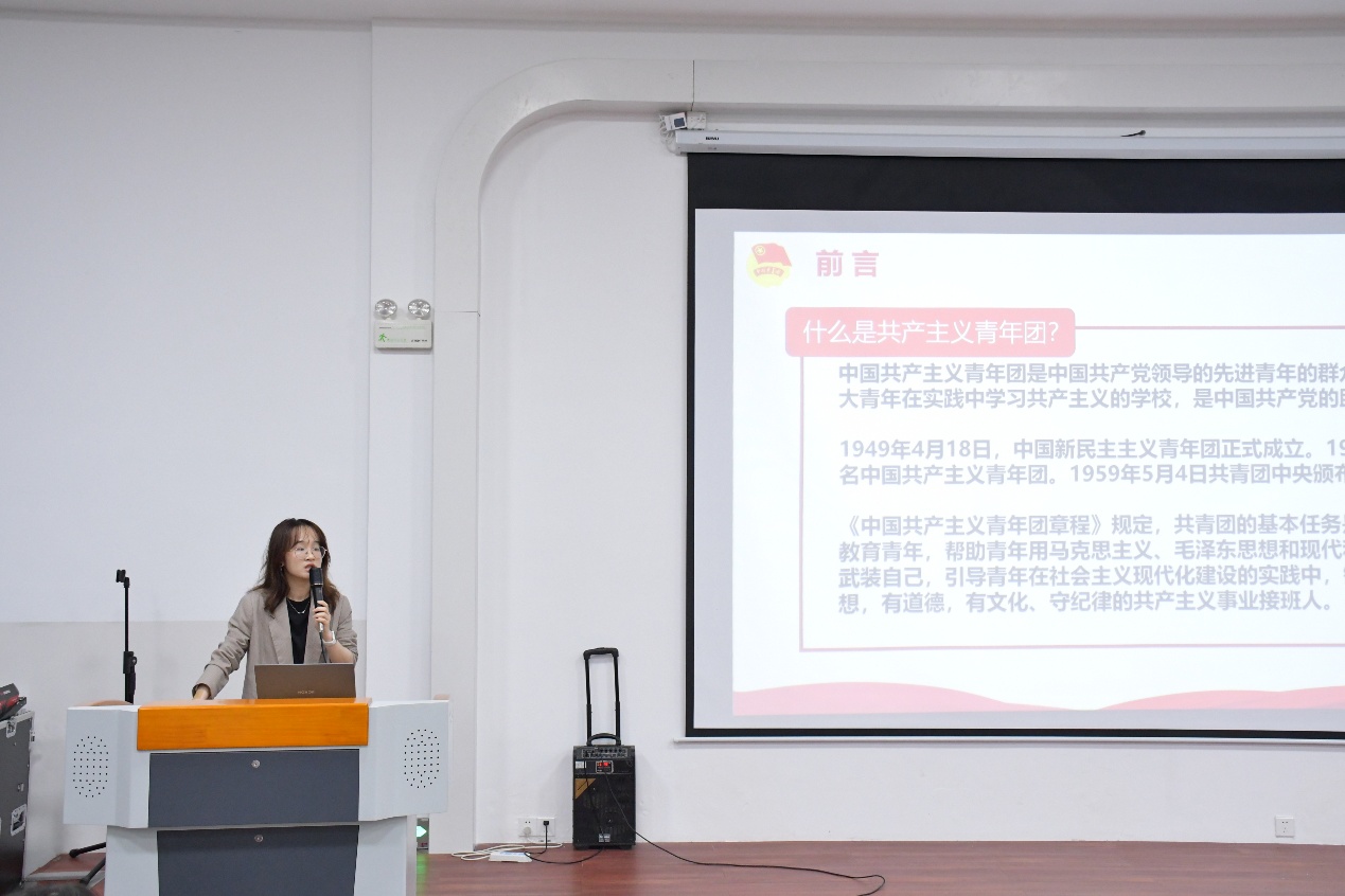 培训伊始,林梓滢老师围绕团的核心知识展开系统讲授,带领同学们回顾共青团成立以来的光辉历程。结合2023年修订的《中国共产主义青年团章程》,林老师详细解读入团条件、团员权利与义务、团的纪律与奖惩机制,强调青年学子要以“有理想、有道德、有文化、守纪律”为标准,不断提升思想觉悟与综合素养。