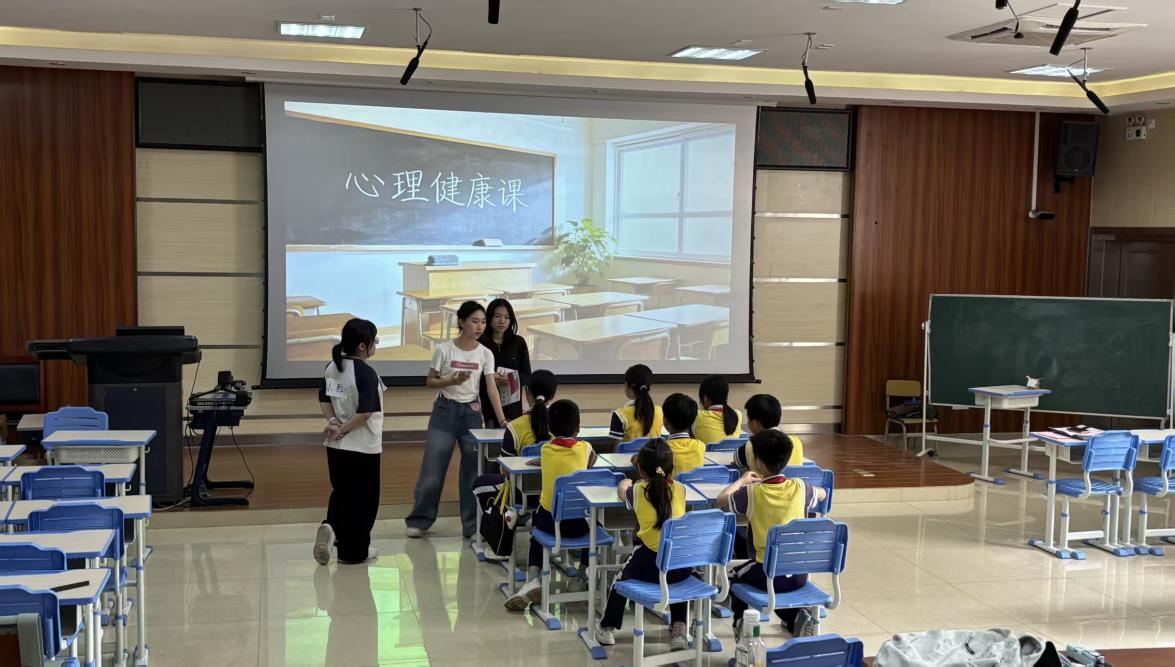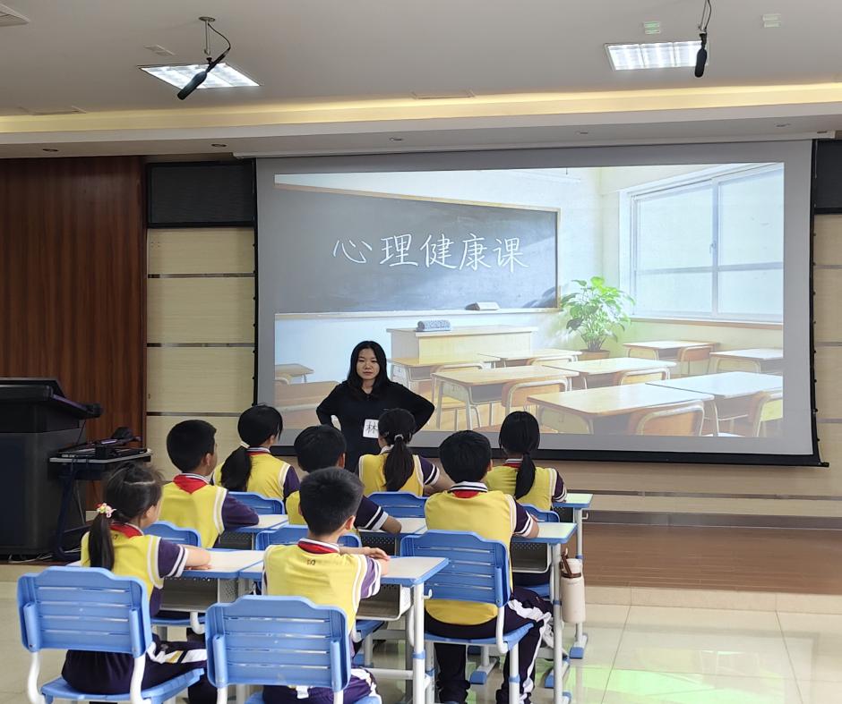在杨泽远老师指导下,24级小学教育专业学生团队提前完成剧本设计、活动方案制定与现场流程规划。活动以心理健康课为起点,团队成员走进斗门实验小学课堂,向小学生普及心理健康知识,引导学生主动表达学习压力、人际交往、自我认同等方面的困惑。