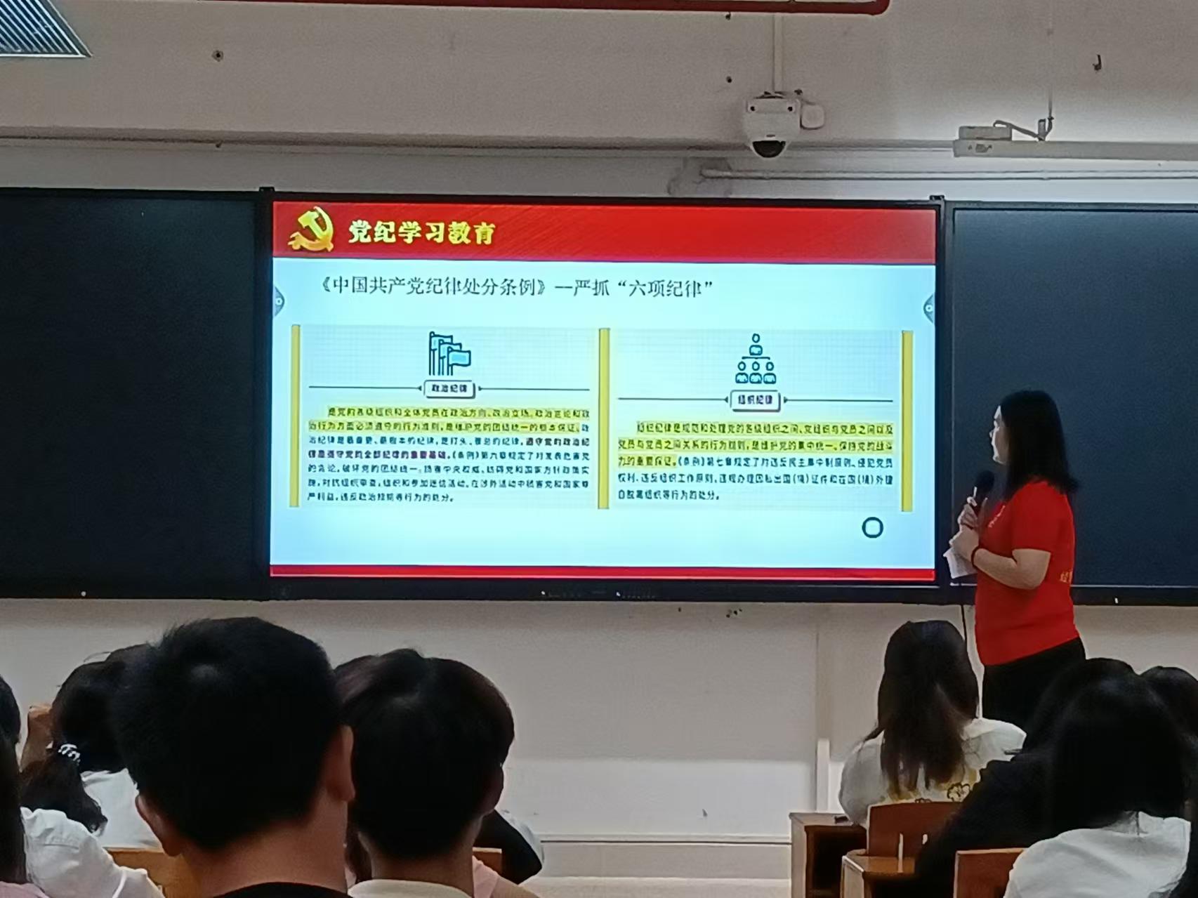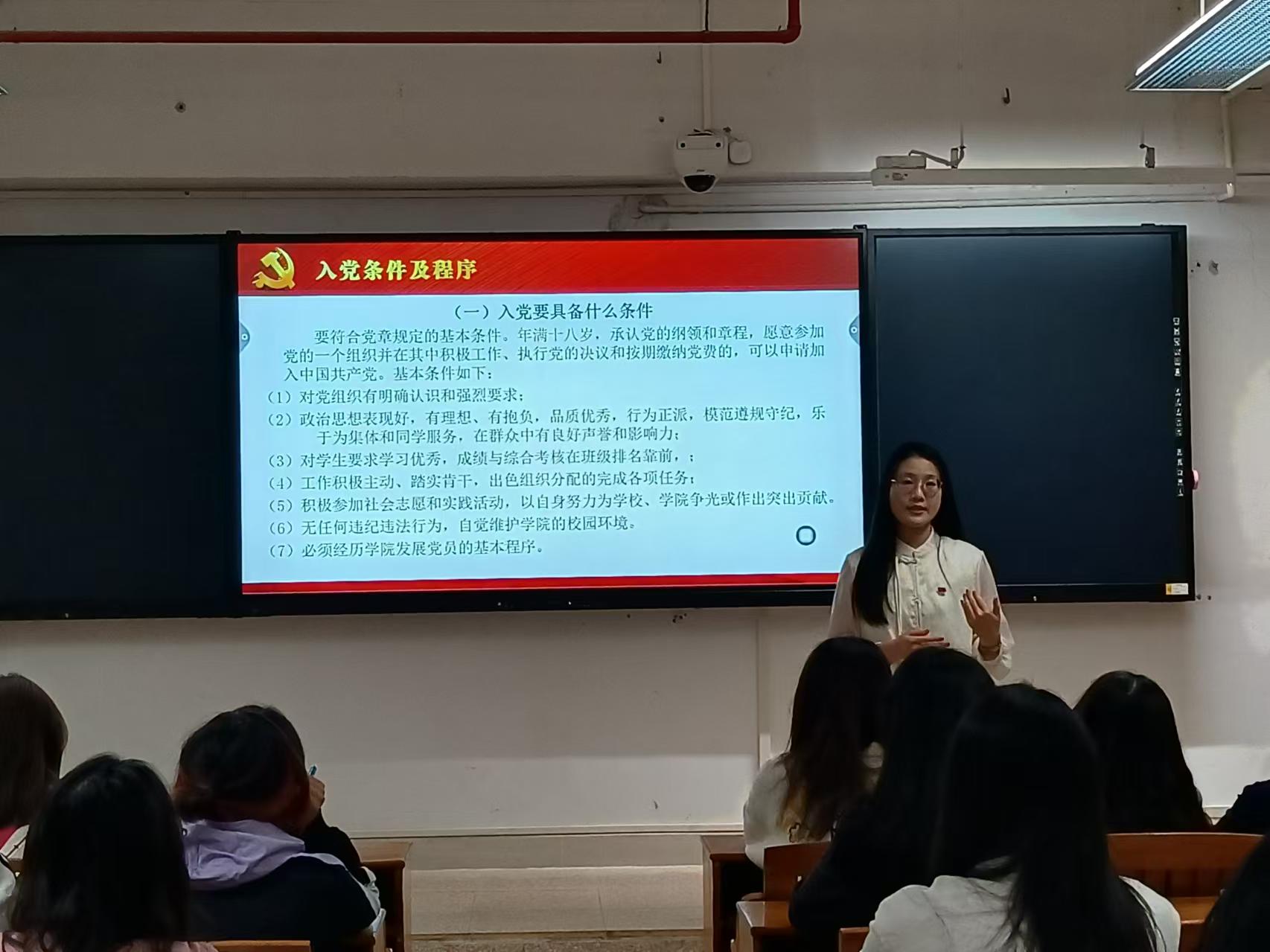 吴梦婷老师对入党条件和程序的相关内容对学员们进行讲述,从而让学员们了解并清楚入党的相关程序,更好的向党组织靠拢。