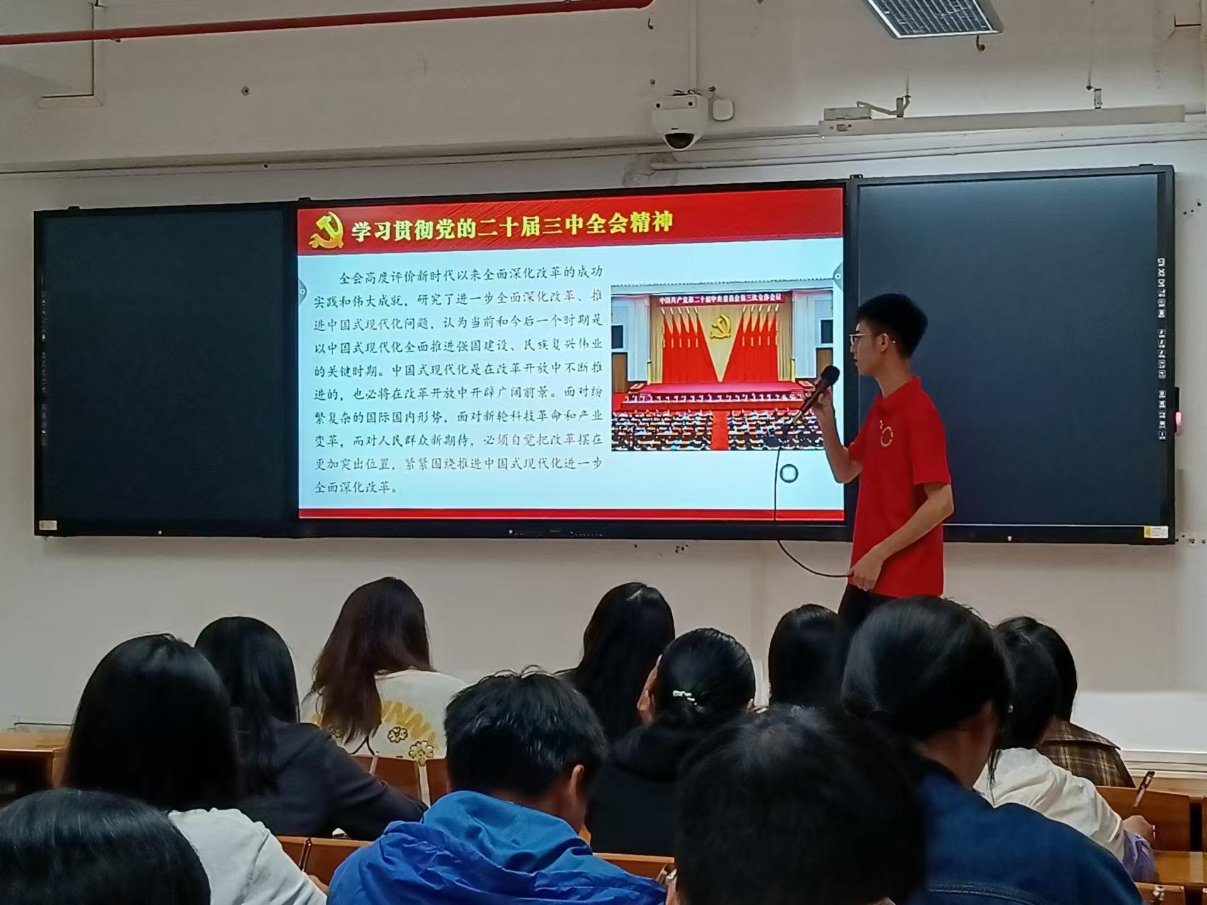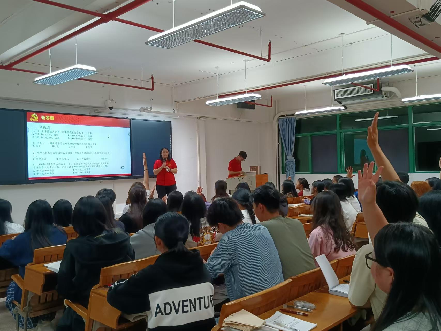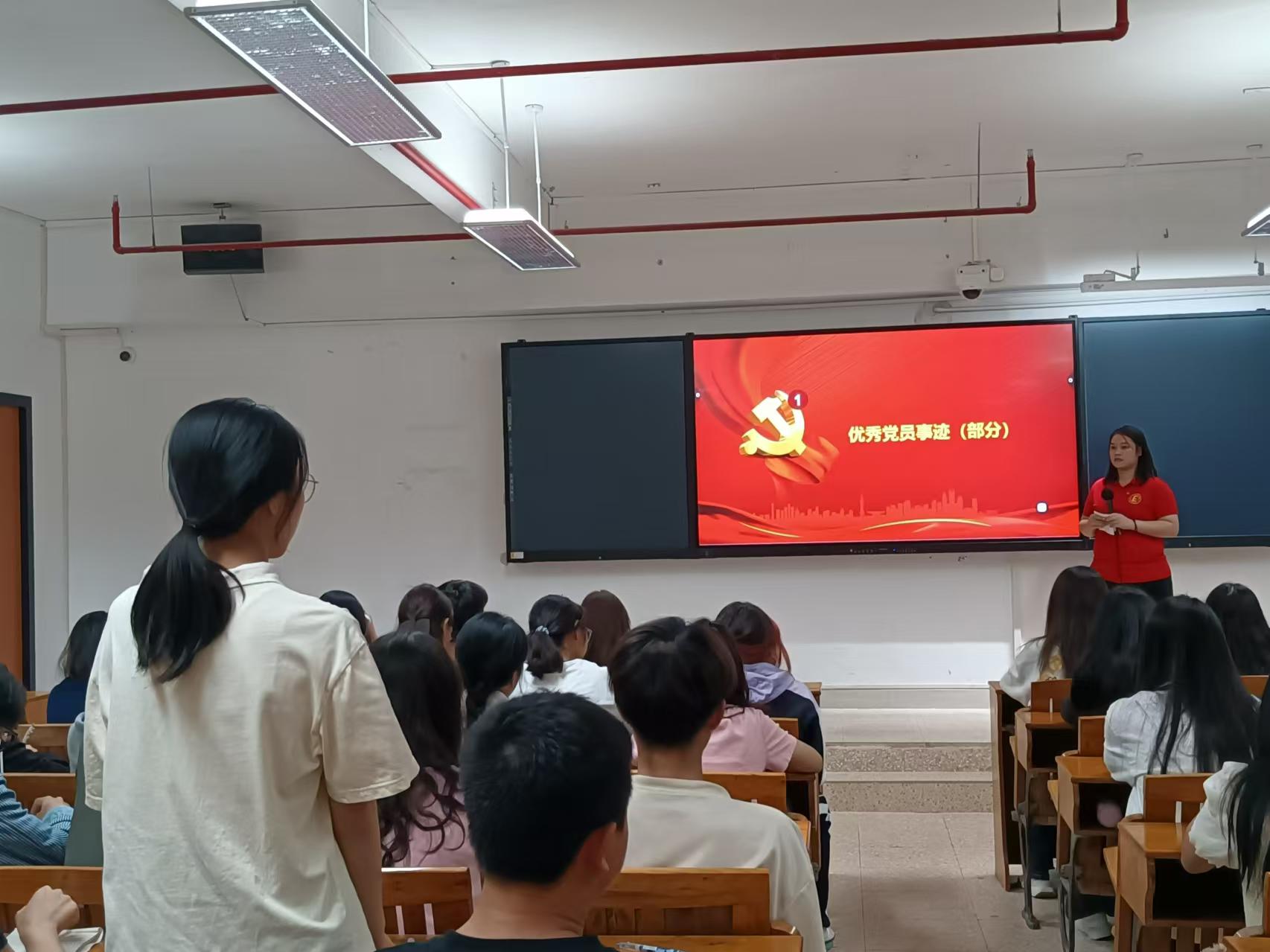 商学院党总支于2024年10月31日19:00在广州校区第五教学楼401,405,408教室和江门校区2教205开展第七期党课第二讲,本次党课由毕业班第一党支部书记吴梦婷和在校学生党员主讲。