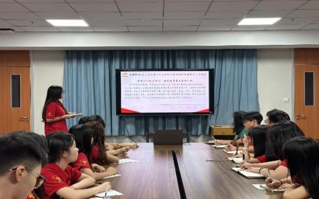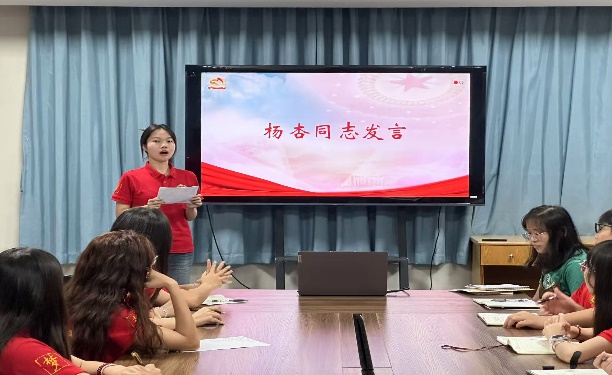 党务秘书梁颖娴强调纪律要求后,进行会议主题学习,学习改革创新,灵活多样创造教学内容;认识党一直在以人民为中心,努力减小教育差距,不断致力教育强国;铭记知识发展科技,科技巩固国力。
