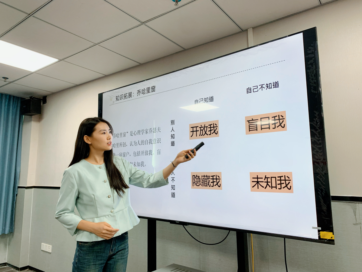在课程中,季欣老师带领全体参与者进行了一场深刻的自我探索之旅,通过“二十个我是谁”的互动活动,引导参与者们深入挖掘并表达自我认知。在此基础上,她引入了乔哈里窗理论,为同学们的自我认知提供了新的视角。