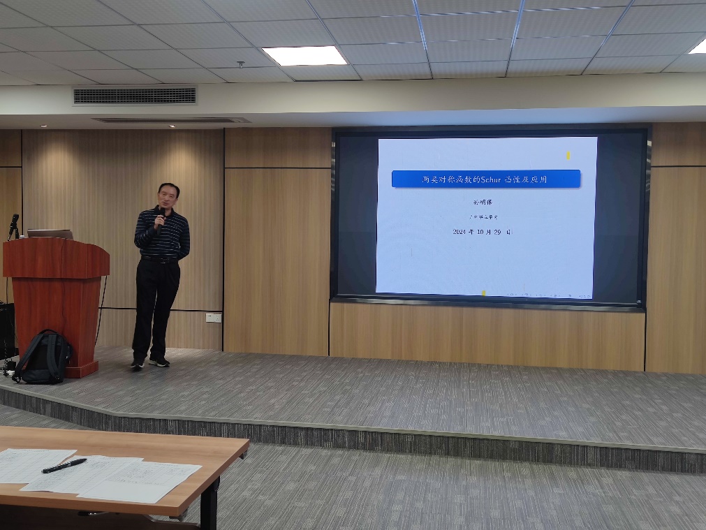 2024年10月29日,广州华立学院科研处主办、通识教育学院承办的一场学术讲座如期在第四教学楼205室举行。此次讲座邀请了孙明保教授作为主讲人,主题为《两类对称函数的Schur凸性及应用》,讲座由廖奕德教学副院长主持,吸引了众多师生的关注,不仅为学院带来了浓厚的学术氛围,也推动了数学研究领域的学术交流。