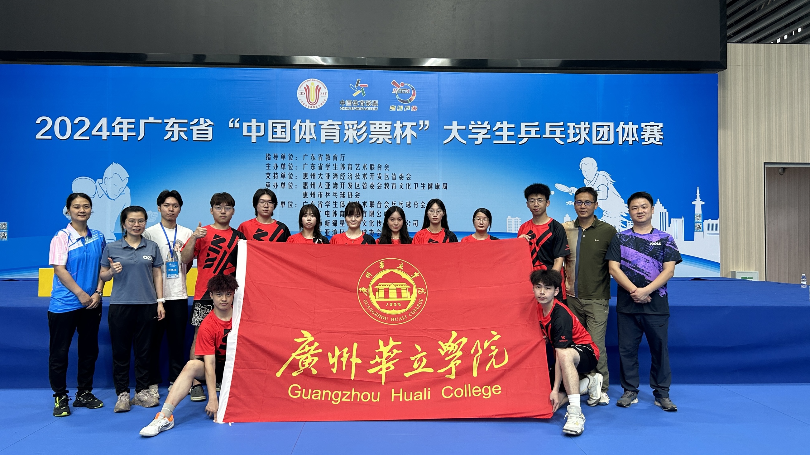 2024年广东省“中国体育彩票杯”大学生乒乓球团体赛于2024年5月22日在惠州市大亚湾奥林匹克体育公园综合馆举⾏,我校积极组队参与。