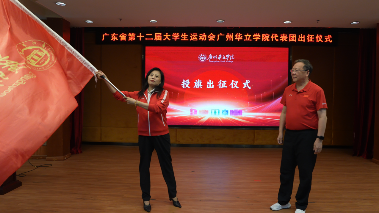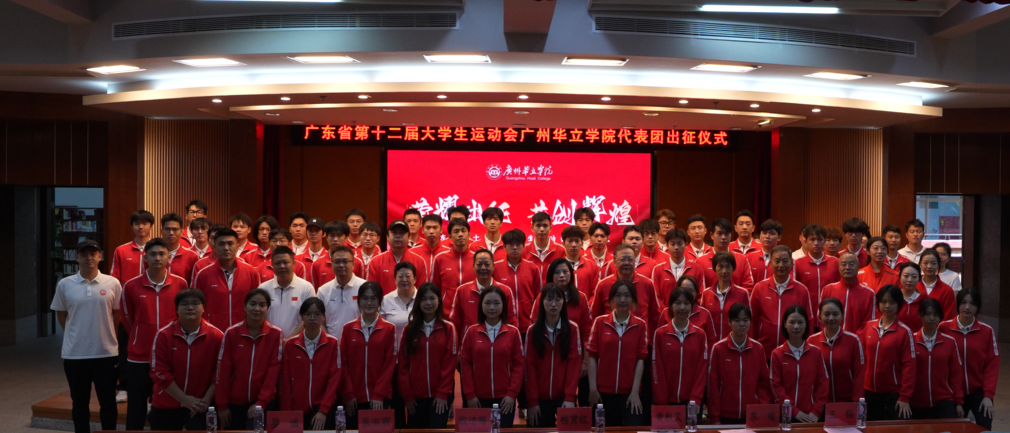 4月28日上午,广东省第十二届大学生运动会广州华立学院代表团出征仪式在增城校区图书馆二号报告厅举行。代表团团长、校党委副书记、常务副校长柏育红;代表团副团长、副校长黄秋文、副校长欧洁梅;代表团秘书长、体育学院院长苏斌;教务处处长张淑丽;团委书记王韬;学生处处长罗诚;各运动队领队、教练员、运动员以及团部工作人员参加出征仪式,大会由代表团副团长欧洁梅副校长主持。