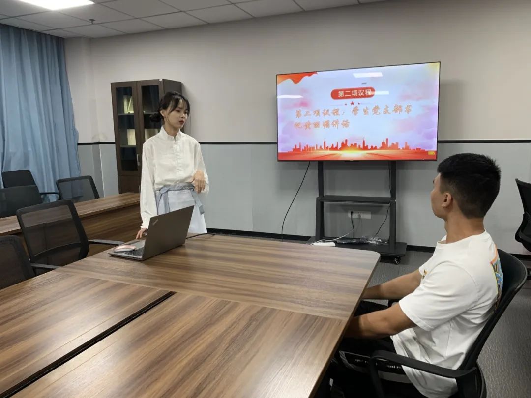 党务秘书吴晓美结合我院党课学习计划,学习党的相关知识理论,对党课培训的要求以及相关的注意事项作介绍,授课党员要向新生说明授课后续注意事项与日后考核要求,做好引导同学正确参加党课学习。