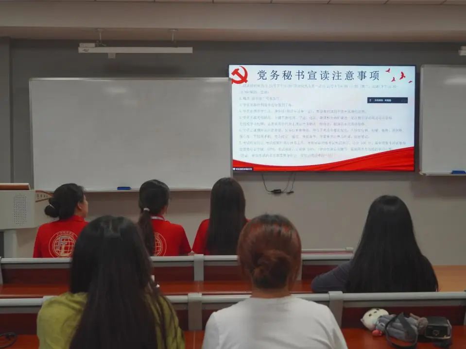 大会第二项,由党务秘书宣读发展对象培训班注意事项,发展对象们都全神贯注的倾听,并认真的做好笔记。