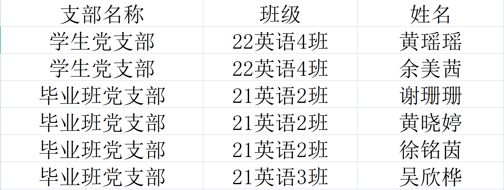 根据《中国共产党章程》和《中国共产党发展党员工作细则》的相关规定,外国语学院党总支拟对黄瑶瑶等6名预备党员进行转正(名单附后)。现对转正名单予以公示: