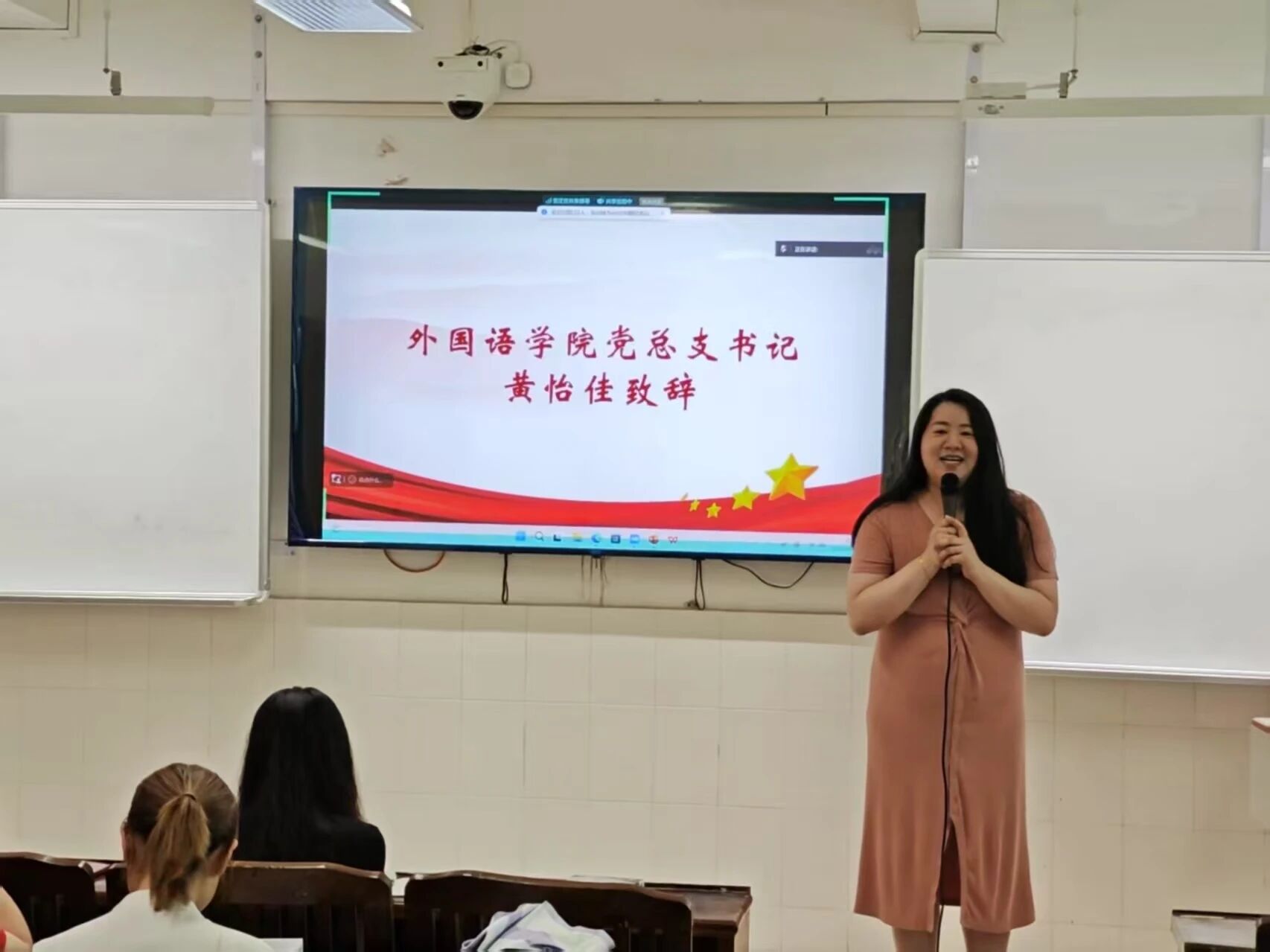 大会在庄严的国歌声中拉开帷幕。外国语学院党总支书记黄怡佳为大会致辞。她充分肯定了学生党支部在党员培养与教育工作中的努力和成果,强调转正大会对党员政治生命的重要意义,鼓励预备党员以此次转正为新起点,在未来的学习、工作和生活中,时刻以党员标准严格要求自己,充分发挥先锋模范作用。