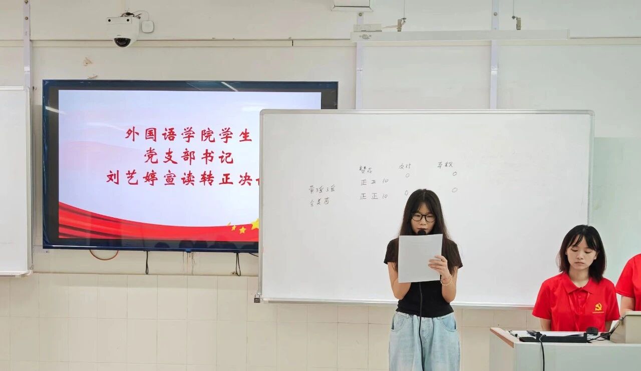 外国语学院学生党支部书记刘艺婷宣读转正决议