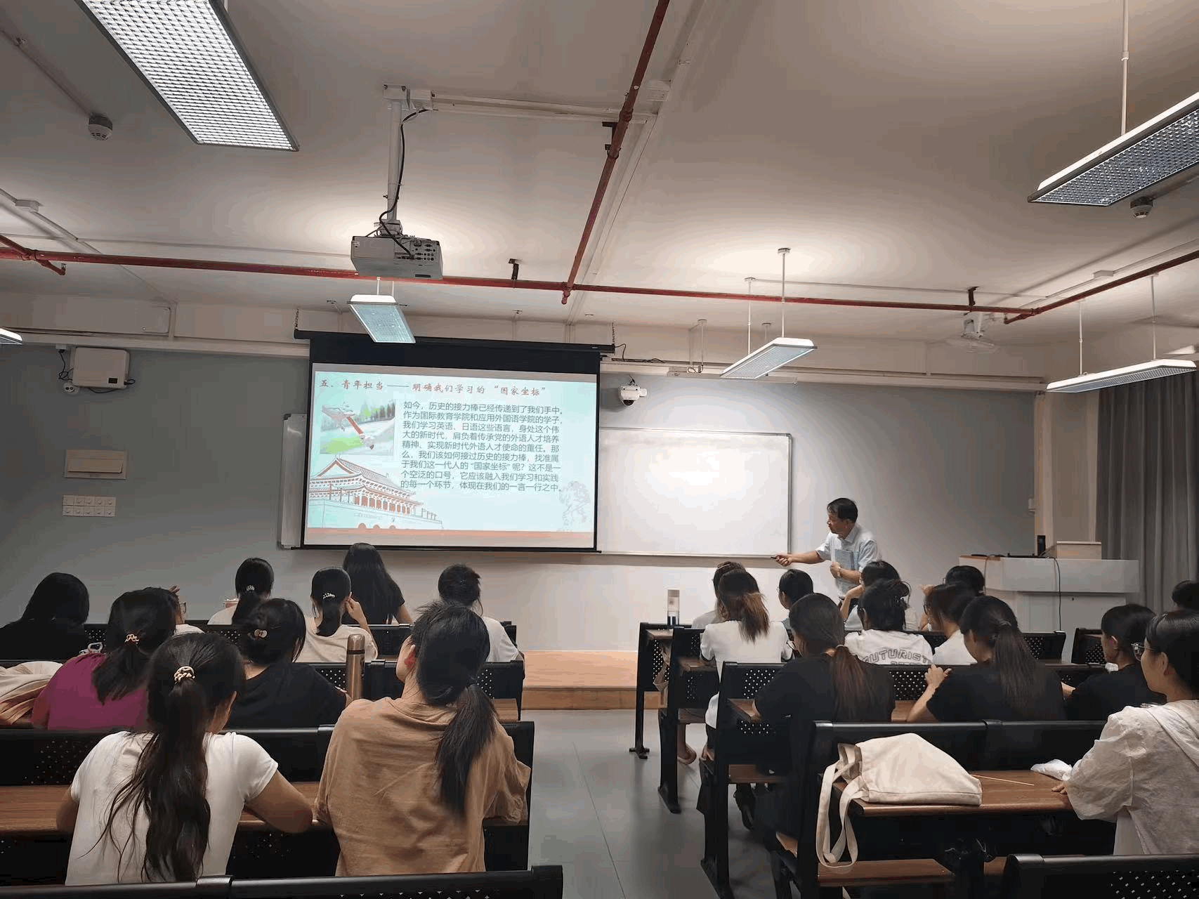 2025年10月14日,四号教学楼501教室气氛热烈,应用外国语学院与国际教育学院的学子们齐聚一堂,聆听院长蔡荣寿主讲的思政第一课。本次课程以“党的外语人才培养史:从革命时期‘地下翻译’到新时代‘国际传播者’的使命演变”为核心,既是落实“党建引领育人”理念的关键举措,更让学子们在历史长河中读懂外语学习的家国意义,明晰新时代青年的责任担当。