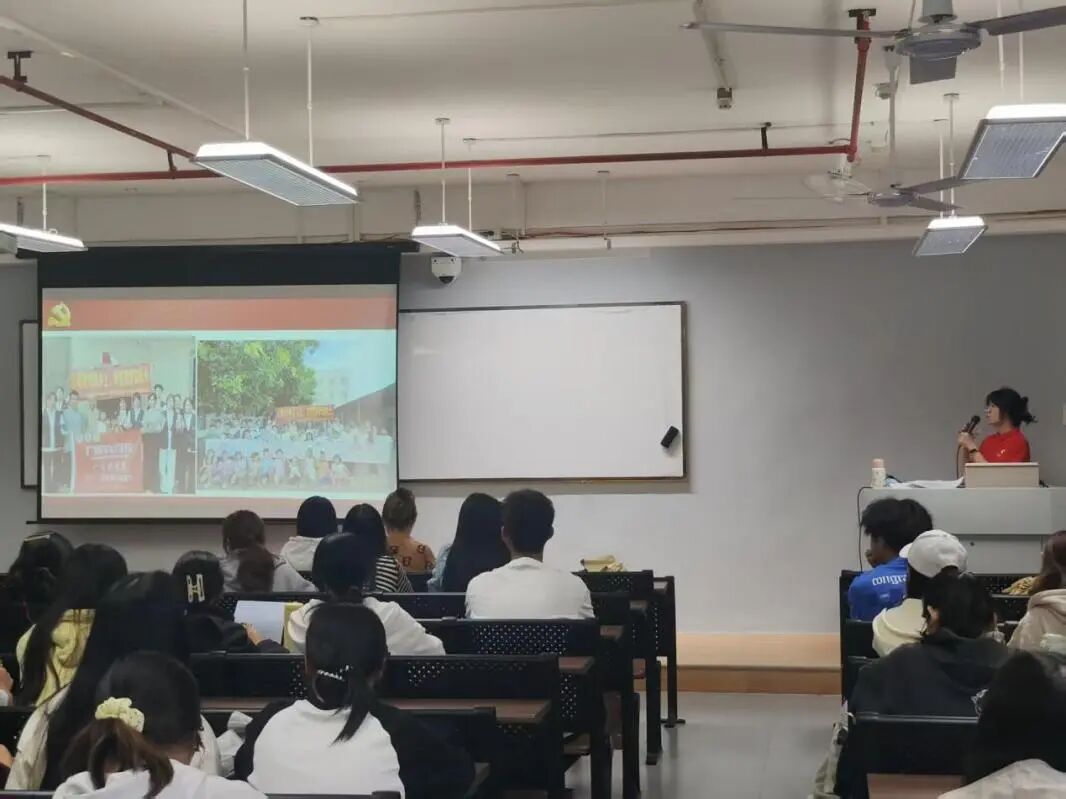 应用外国语学院/国际教育学院于2025年10月22日在4-703教室顺利举办第九期党课第一讲。本次课程由应用外国语学院学生党支部书记刘艺婷与学生党员吴晓琳共同主讲,全体学员参加学习。