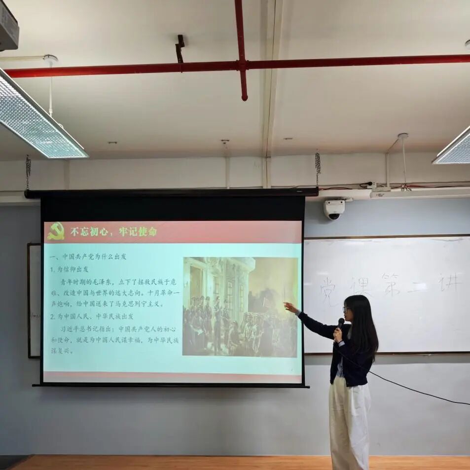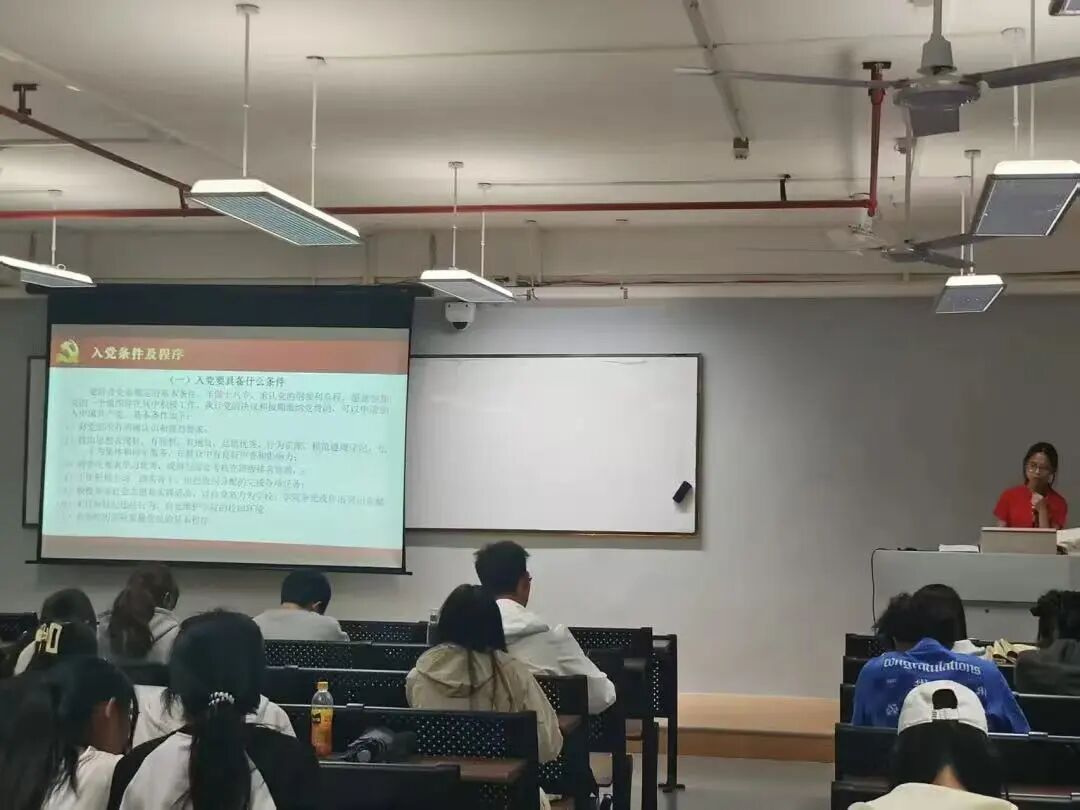 应用外国语学院/国际教育学院于2025年10月22日在4-703教室开展第九期党课第二讲,由应用外国语学院毕业班党支部书记黄丽媚、学生党员林钰佩授课,全体党课学员参与学习活动。