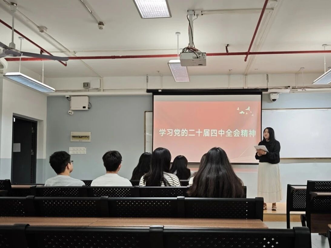 会议伊始,党总支书记黄怡佳首先提到了党的二十届四中全会在国家发展进程中的重要时空坐标与历史意义。她指出,全会是在全面建设社会主义现代化国家新征程关键时期召开的一次重要会议,其决策部署为推进国家治理体系和治理能力现代化指明了方向。行政教辅队伍作为学院管理体系的重要组成部分,是连接学院决策部署与师生日常学习工作生活的关键桥梁,必须率先学深悟透全会精神,明确自身在新时代背景下的职责使命。