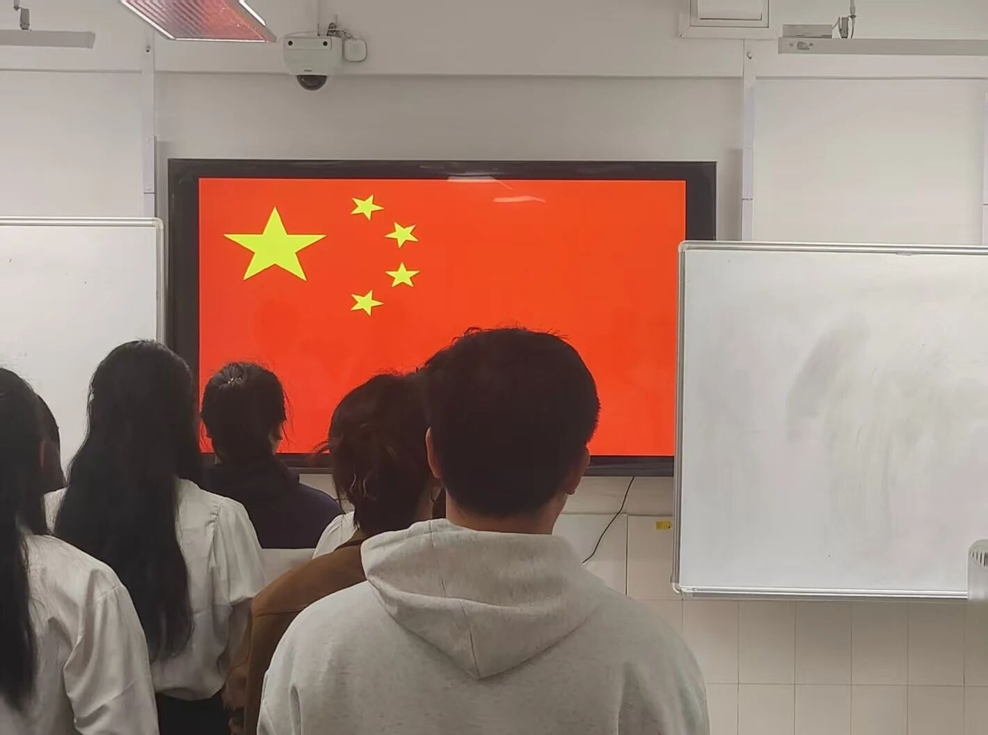 大会伊始,全体参会人员起立,奏唱国歌。激昂雄壮的旋律在教室中回荡,党员同志们神情严肃、歌声嘹亮,用铿锵有力的歌声抒发对祖国的无限忠诚与热爱,更坚定了为党的事业不懈奋斗的信念,现场庄重神圣的氛围被瞬间点燃。
