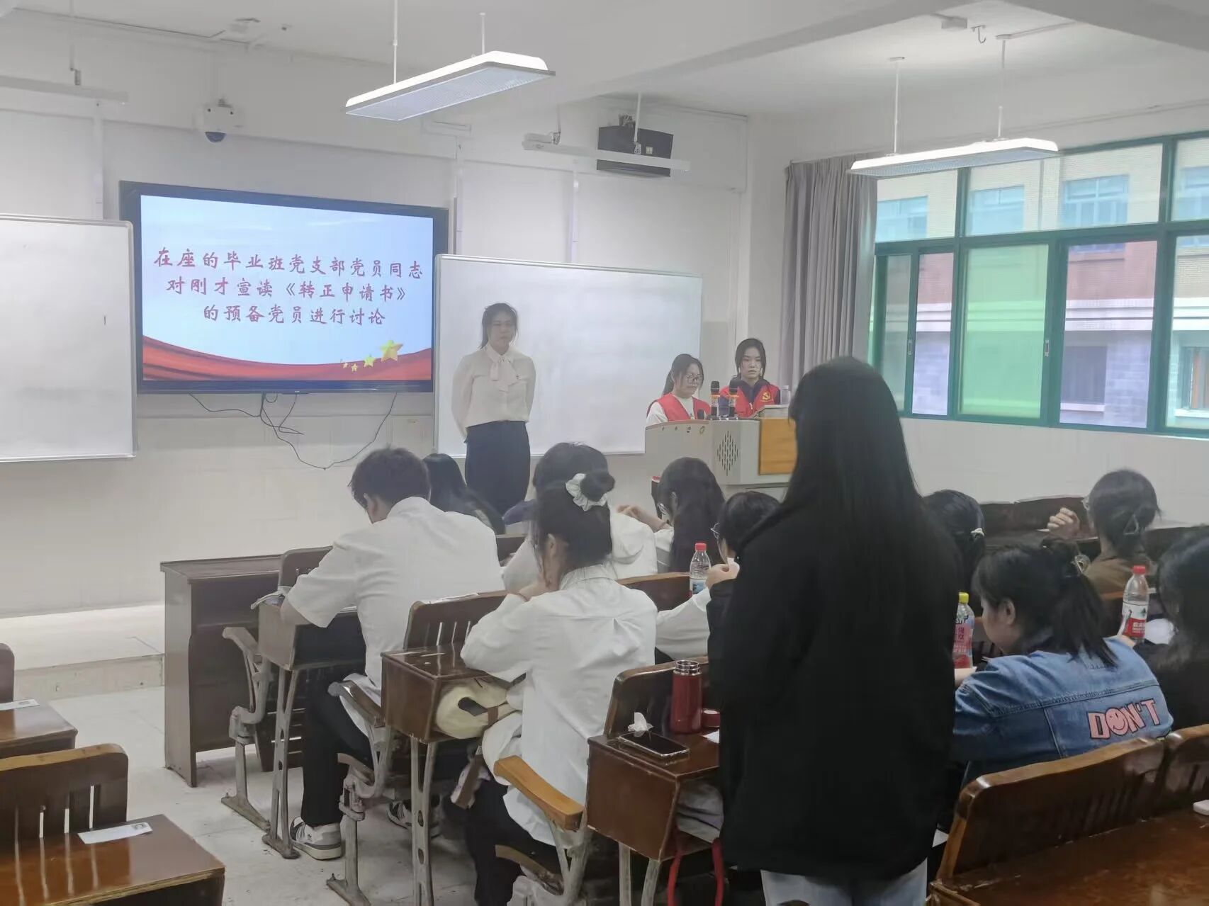 预备党员依次上台作转正申请发言,全面汇报自己在预备期内的思想政治学习、专业课程实践、校外实习工作以及党性修养锤炼等方面的具体情况,深刻剖析自身存在的不足,并明确提出转正申请与未来努力方向。宣传委员宣读校外实习党员转正征求班主任意见调查表,介绍班主任对预备党员实习期间工作态度、纪律表现、团队协作能力等方面的评价意见;组织委员宣读预备党员校外实习鉴定表,客观陈述预备党员在实习岗位的履职情况、业务能力提升及现实表现鉴定结论。毕业班党支部全体正式党员围绕预备党员预备期表现展开充分讨论,在座党员结合日常了解与材料内容,逐一发表意见,既肯定预备党员的成长与进步,也坦诚指出其需要改进的地方。讨论结束后,全体有表决权的正式党员以无记名投票的方式进行表决。