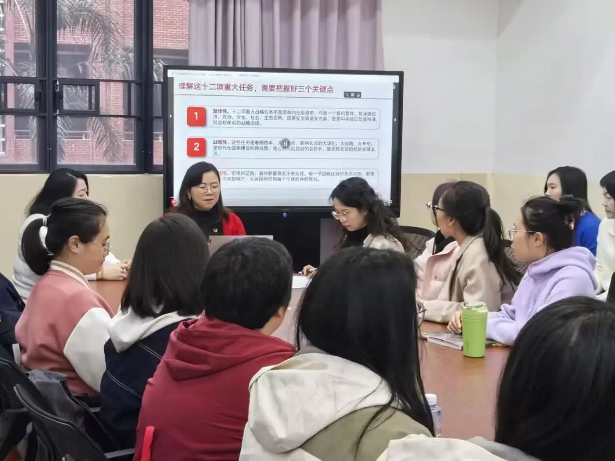 随后,与会党员以分组形式,分头开展专题研讨。党员们结合自身教学科研、育人工作实际,围绕如何将全会精神融入外语教育教学、服务国家对外开放战略、培养高素质国际化人才等主题展开热烈交流。大家一致认为,要以全会精神为指引,立足本职岗位,强化使命担当,不断提升外语教育教学质量,为学校高质量发展和国家 “十五五” 时期建设贡献教育力量。