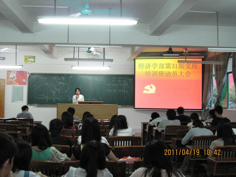 2011年4月19日下午18:30,广东工业大学华立学院经济学部第31期党校动员大会在第二教学楼208室胜利召开。