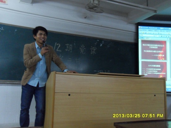 为加强新生对党的认识,并且进一步了解党课的重要性,在2013年3月,我党总支按照学院党委综合办的安排,