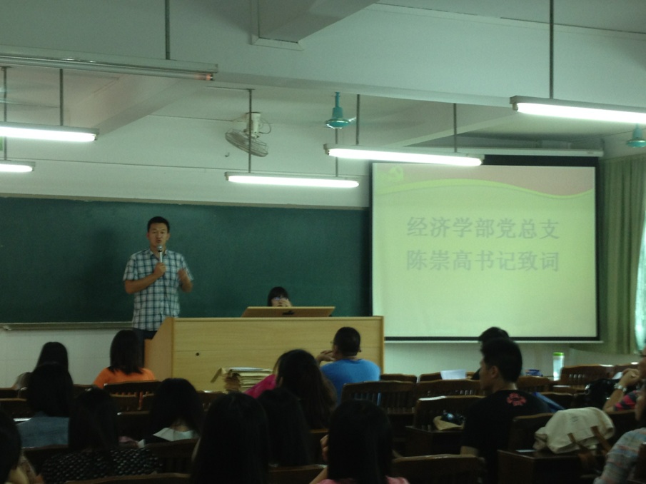 首先,经济学部党总支书记陈崇高发表讲话,对在座的所有党员同志表示了肯定,并勉励毕业生在校外积极进