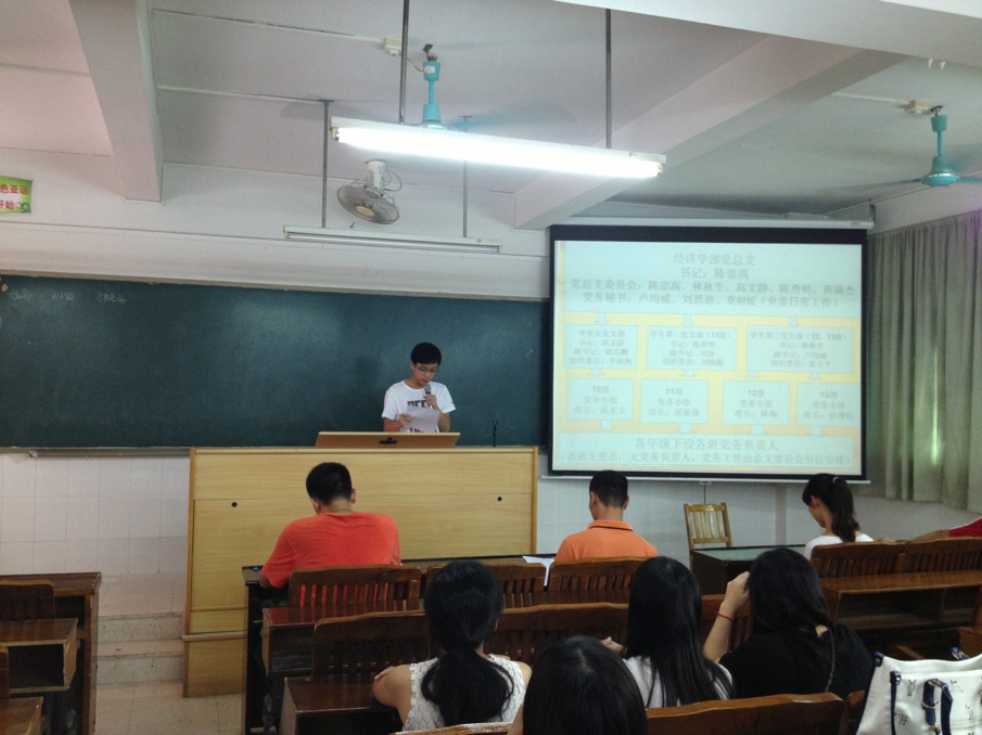 2013年9月25日(星期三)12:00。经济学部全体学生党员以及部分教工党员代表在2号楼208召开了经济学部