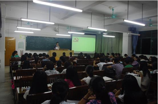2013年9月23日(星期一)19:00,经济学部党支部于第二教学楼组织新生开展党章学习,授课党员们按时到各班