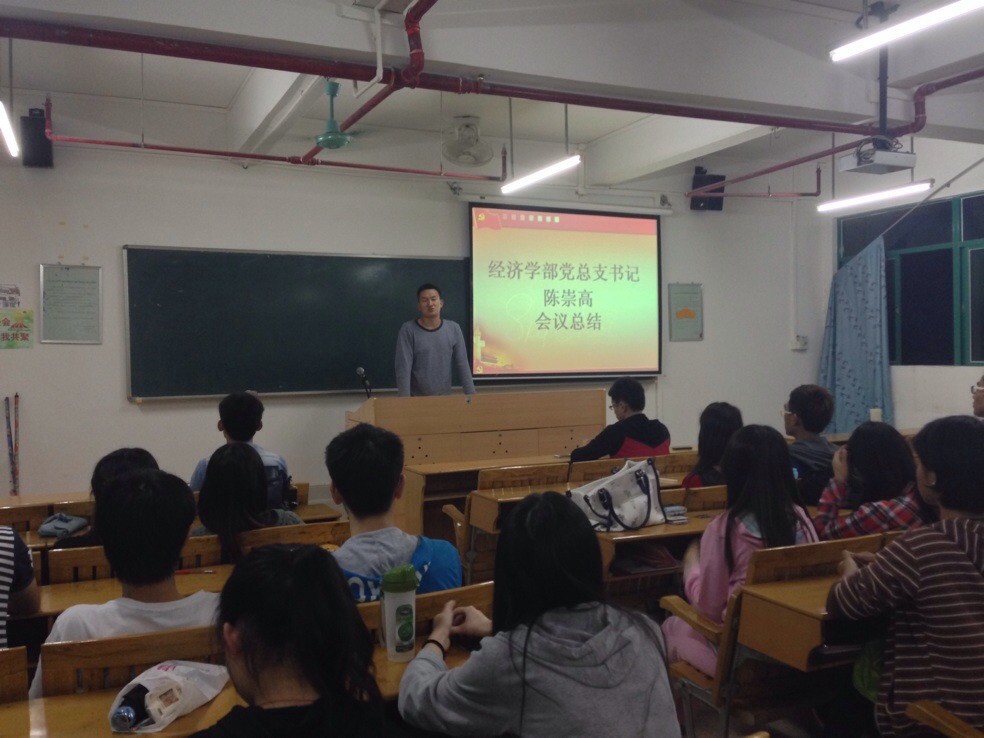 2013年10月30日,经济学部党总支于五号楼508召开经济学部党总支批评和自我批评大会。出席人员有经济学部党总支书记陈崇高以及经济学部全体党员。