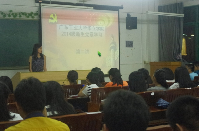 2014年9月16日(星期二)19:00,经济学部党总支于第二教学楼组织新生进行了党章的学习,各班授课党员们准时到各班教室为14级新生上党章第二讲。