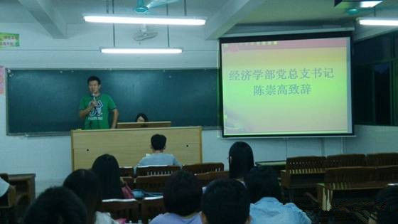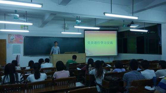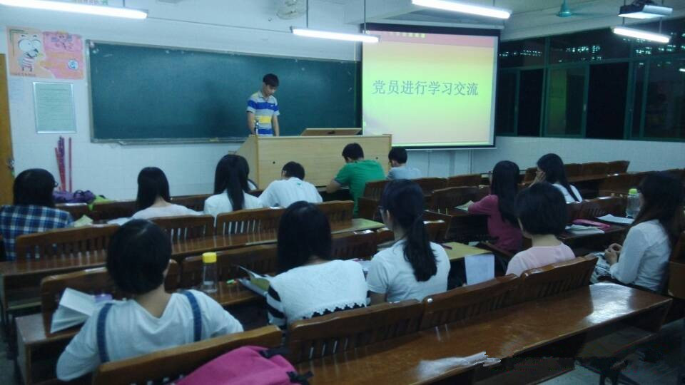2014年10月23日18:00,经济学部党总支在2号楼208召开关于《中国共产党发展党员工作细则》和《习近平总书记系列重要讲话读本》学习交流会。出席人员有经济学部党总支书记陈崇高以及学部全体学生党员。