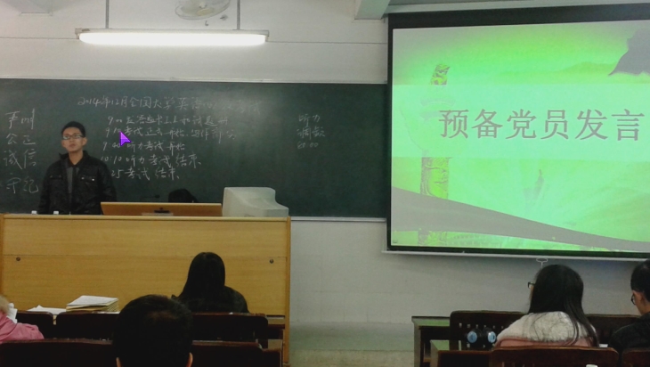 会议的第一项议程是积极分子通表。李晓云等2位积极分子上台发言,他们讲述了自己从递交申请书开始至今的学习生活和在外实习的感受,随后他们的入党介绍人对其进行了发言,提出意见和建议。在座的所有正式党员通过无记名投票的方式表决通过他们成为预备党员。