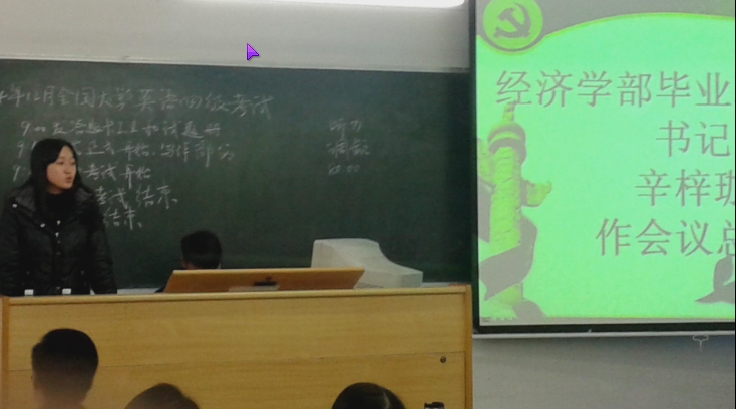 2014年12月20日中午12时30分,经济学部毕业班党支部于1号楼201召开通表暨转正大会。出席本次会议的人员有,经济学部毕业班党支部书记辛梓珈、经济学部毕业班党支部学生党员以及2名发展对象。