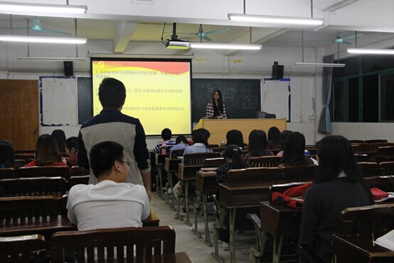 2015年3月25日19:00,经济学部党组织于第一教学楼组织学员们继续开展党课第三讲的学习,主要内容是围绕当今热点问题进行专题讨论以及观看优秀共产党员事迹视频。