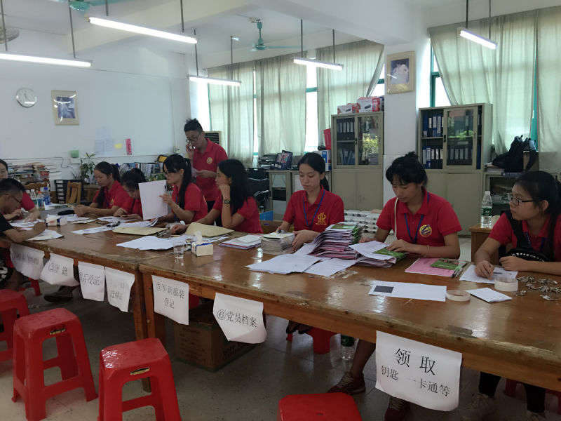 在16级新生开学之际,于2016年8月20、21日,经济学部党务秘书以及党员积极协助经济学部学生会开展迎新工作。为期两天的迎新活动,在炎炎烈日中,在毫无预兆的