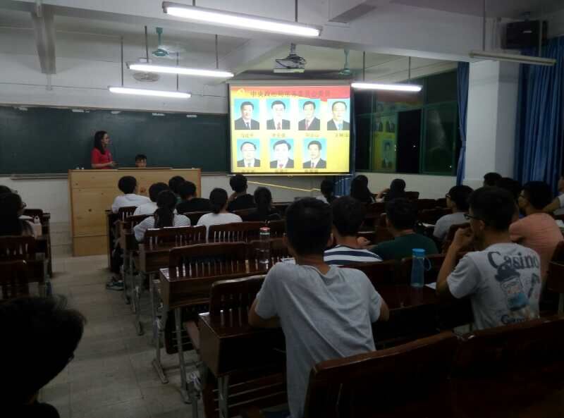 经济学部党总支于今天(2016年9月8日)晚上19:00-21:00进行了党章第二讲,此次讲课安排在二号楼的三层的有设备课室,8个党员两两搭配,进行了首次合作的授课,配合和谐,让新生们对党员师兄师姐多了一份亲切感,同时站在台上的党员也不负使命,给新生们讲解了党的基础知识,党的发展历程,以及国家领导等等,让新生渐渐对党有了新的认识,更加增加了新生们对党的兴趣。贯彻于新生的脑海里是党的宗旨,即全心全意为人民服务。