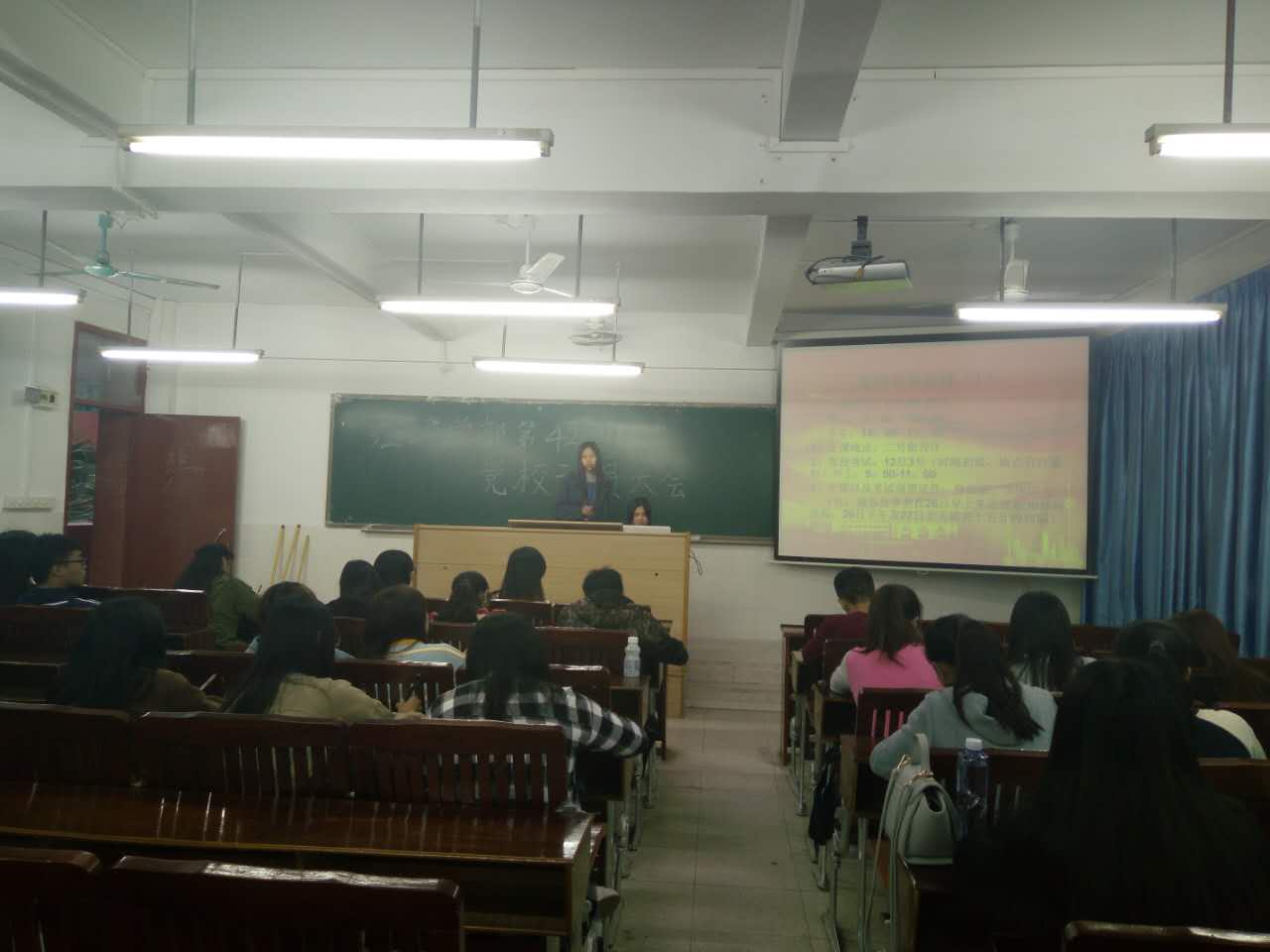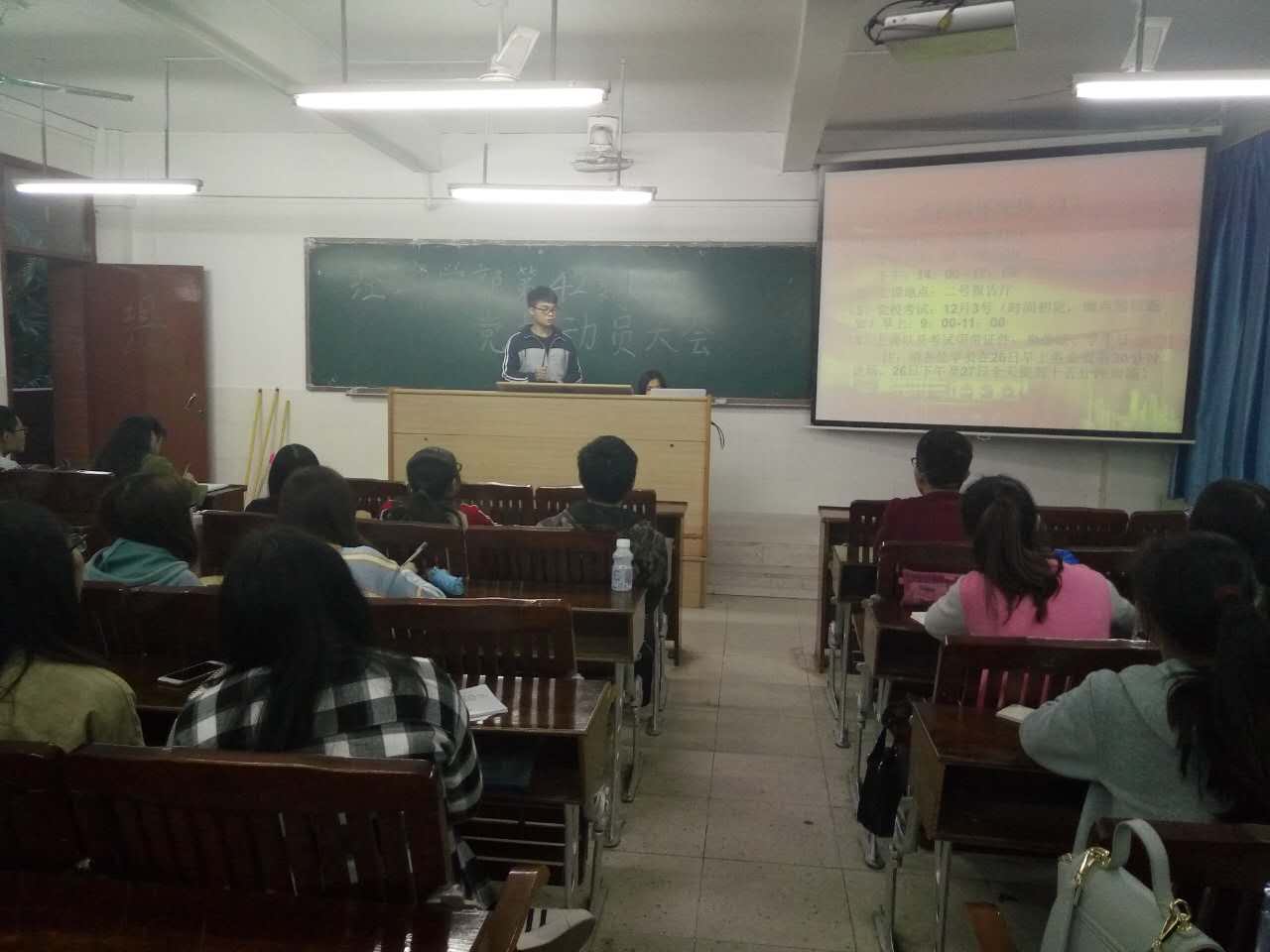 2016年11月23日17:10分,经济学部党总支在2号楼301课室举办第42期党校动员大会,参与本次会议的人员有经济学部党总支学生党支部书记方惠英老师、14级辅导员李梅老师、经济学部党总支学生党支部副书记周子渊、经济学部党务秘书以及经济学部第42期党校学员。