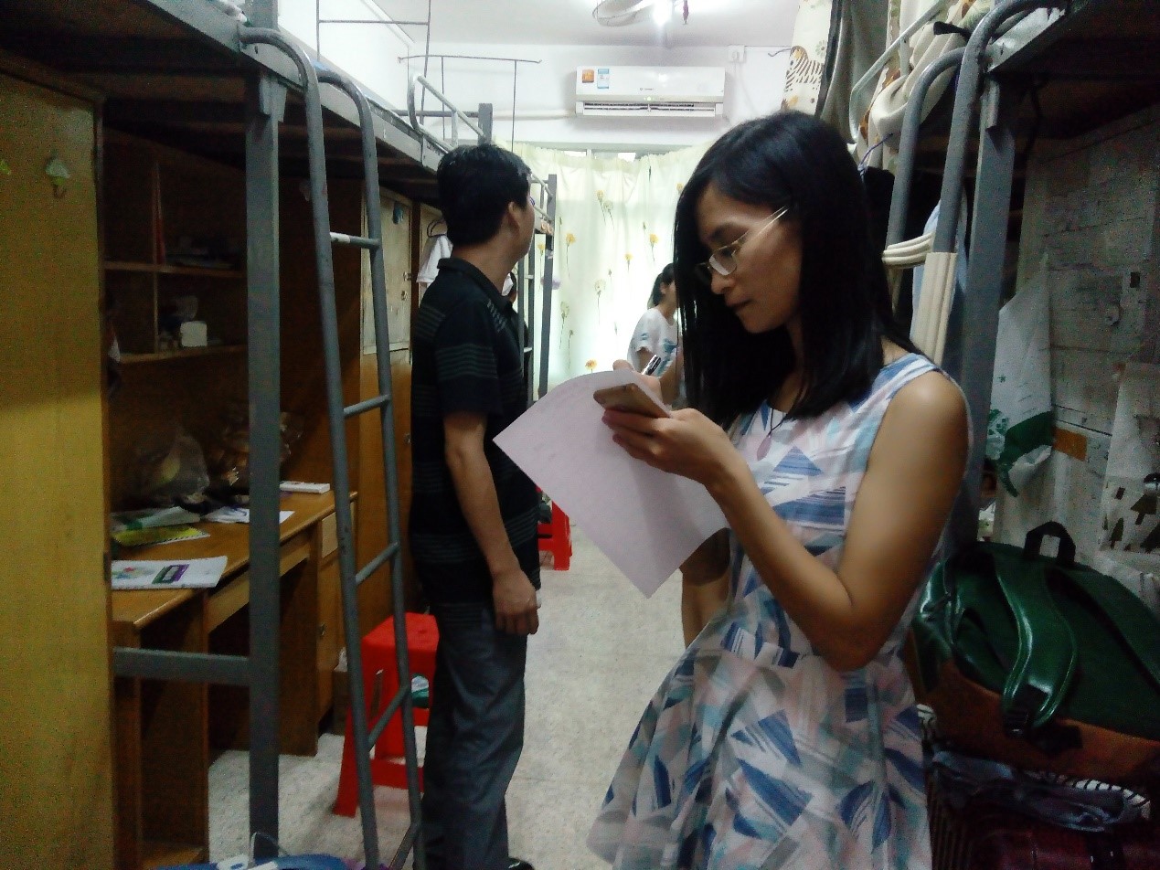 对两位书记和党务秘书的到访,学生党员和新生们表示热烈的欢迎。走访工作中,林书记最关注新生在校日常以及学生党员与新生同住一宿舍的相处情况。有新生表示,在接受军训训练、党章学习后,渐渐适应学校周一到周五进行早晚在课室自修的制度,宿舍里与室友们相处融洽,参加社团以及报名学校各种比赛活动,觉得大学不比高中轻松,但生活很充实。除了了解新生的想法,两位书记还检查了示范岗宿舍卫生,一致强调学生党员要发挥带头作用,引导新生做好宿舍卫生工作,宿舍卫生条件搞好了,新生住着也健康。对于新生床位桌子上物品乱摆放的现象,林书记一一指出问题,并指导新生用正确的方法进行改进。
